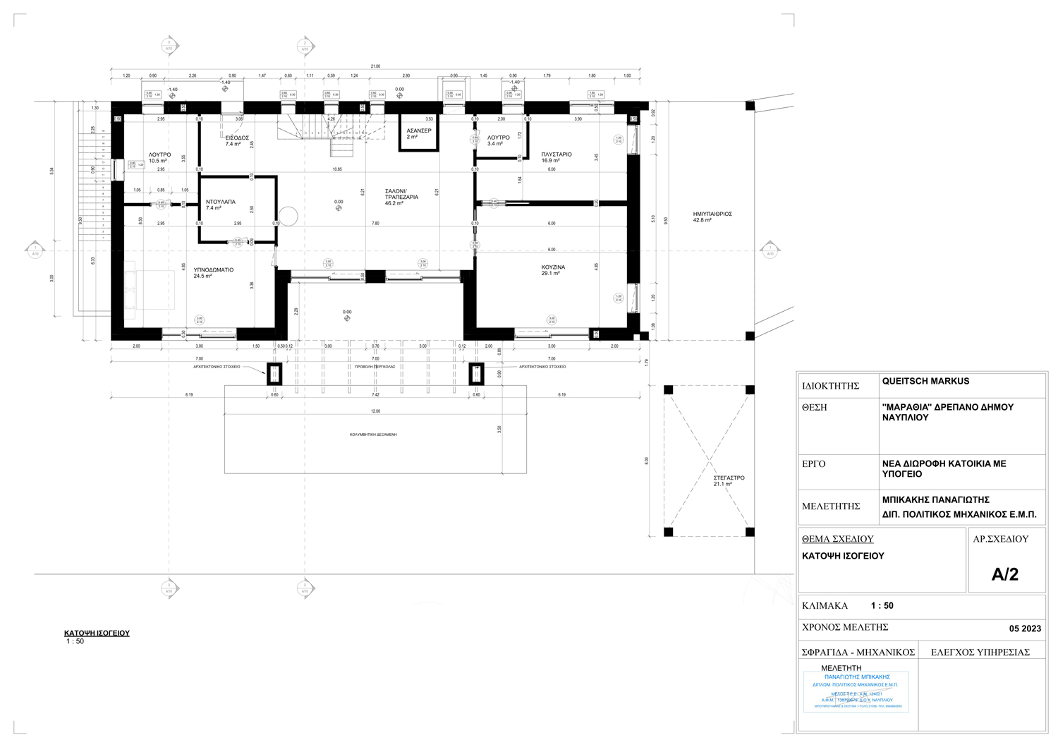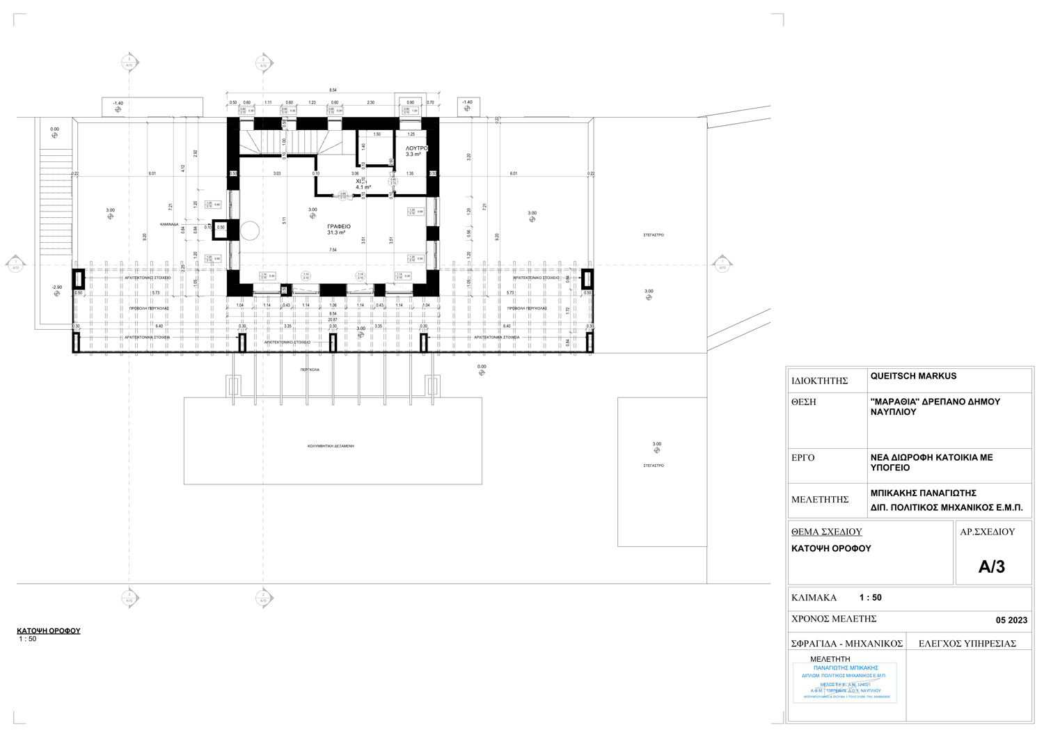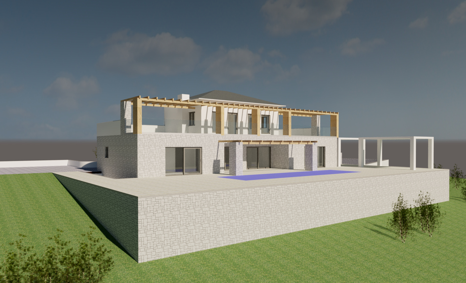 Λεύκα - Δρέπανο - (Μελέτη) Μελέτη διώροφης πολυτελούς μονοκατοικίας με υπόγειο και πισίνα με παραδοσιακά στοιχεία και πλήρη προσαρμογή στις προτιμήσεις του πελάτη.