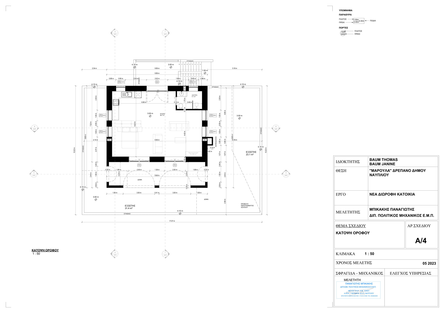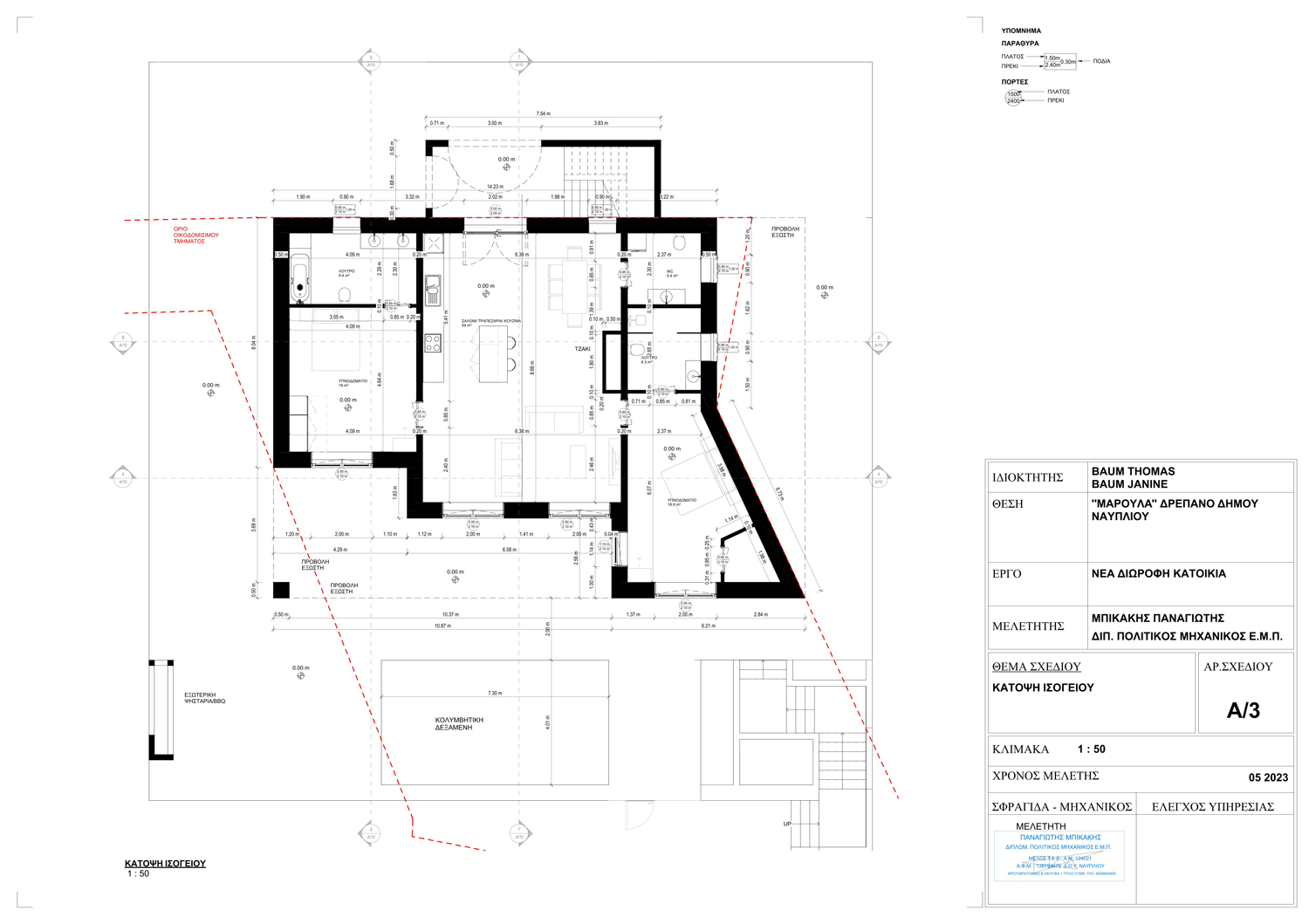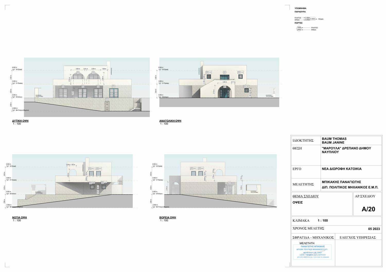 Μαραθιά - Δρέπανο - (Μελέτη) Μελέτη διώροφης πολυτελούς μονοκατοικίας με υπόγειο και πισίνα με παραδοσιακά στοιχεία και πλήρη προσαρμογή στις προτιμήσεις του πελάτη.