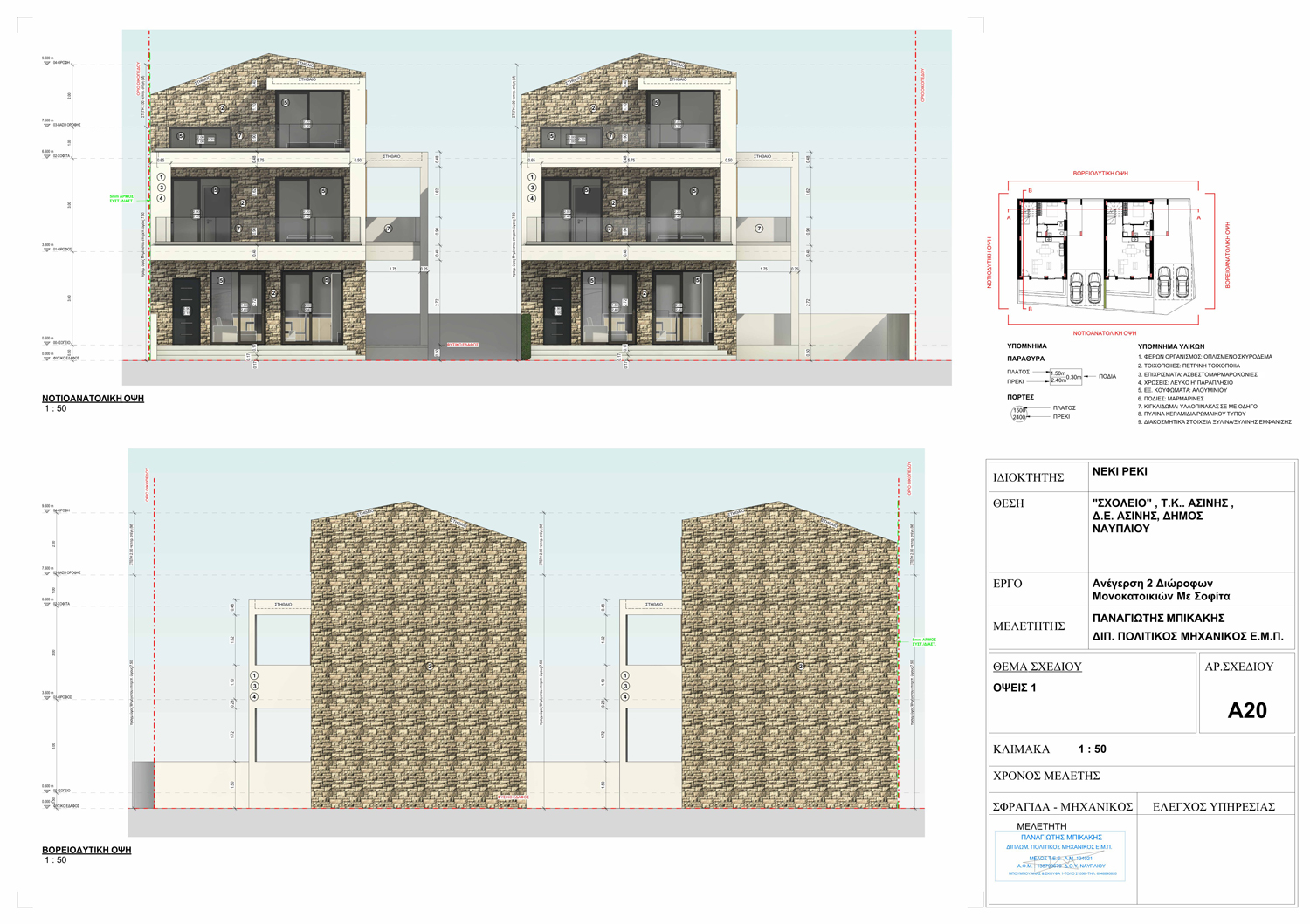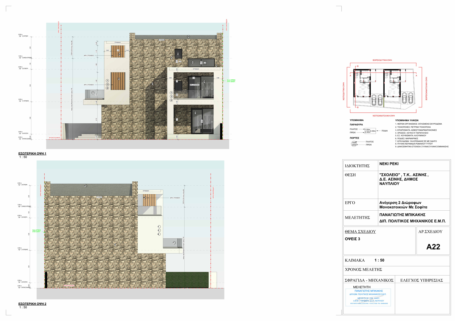 Κατασκευές - Ανακαινίσεις - Τεχνικές Μελέτες - Αδειοδοτήσεις - Διαχείριση & Επίβλεψη Έργων - Έκδοση Ενεργειακών Πιστοποιητικών - Συμβουλευτική Ενεργειακής Αναβάθμισης - Προγράμματα Εξοικονομώ - Αναπαλαίωση Κτιρίων - Συντήρηση | Ναύπλιο Σαρανταπόρου - Ασίνη - (Μελέτη) Μελέτη 2 διώροφων πολυτελών μονοκατοικιών με σύγχρονη αρχιτεκτονική ταυτότητα και πλήρη προσαρμογή στις προτιμήσεις του πελάτη.